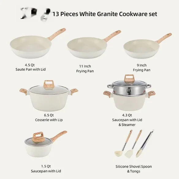 Available in 12-piece, 13-piece, and 17-piece sets, this collection is perfect for everyday meals, family cooking, and gourmet creations. The sleek white design adds a clean, modern touch to any kitchen while delivering professional-level performance.