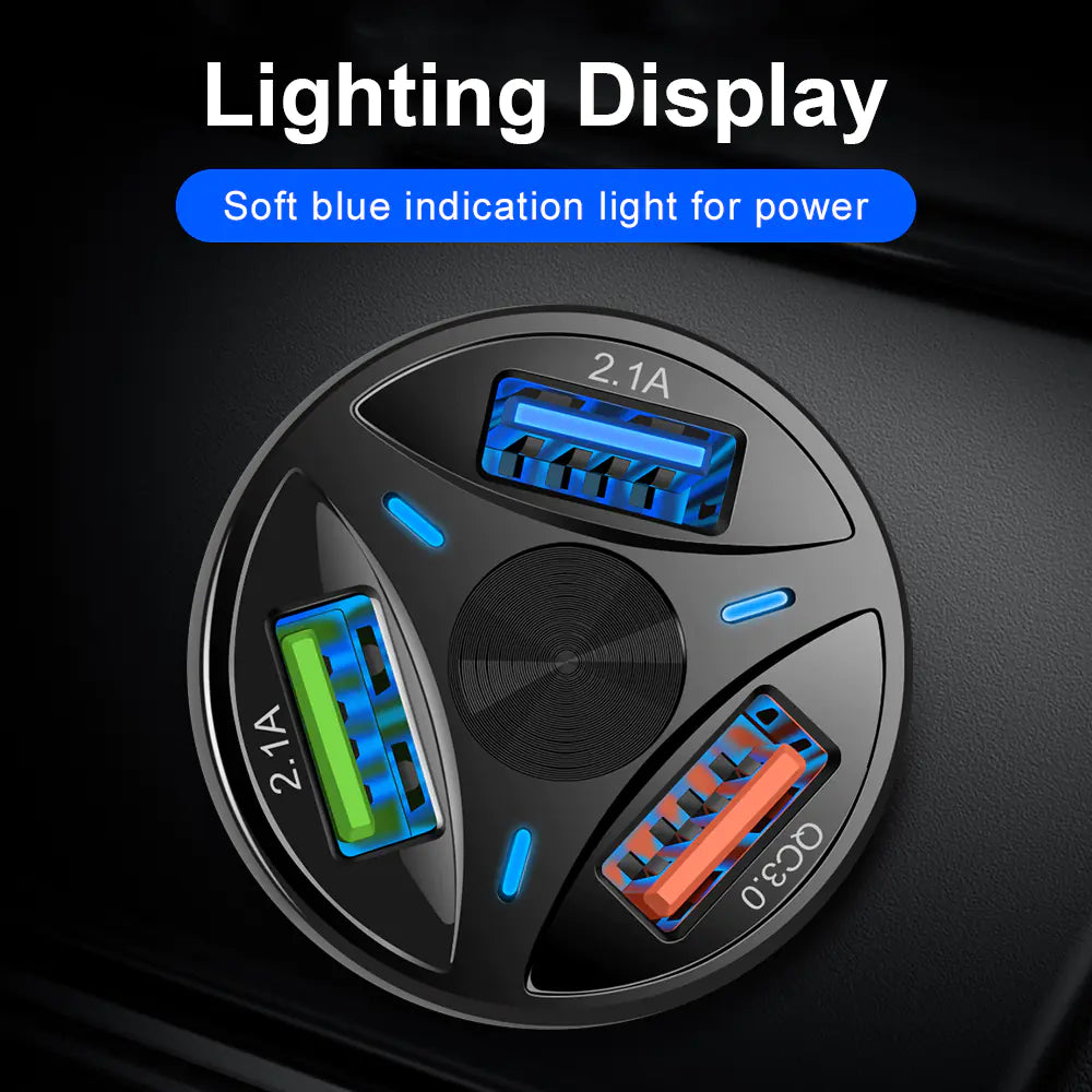 QC3.0 car charger, fast car charger, USB-C car charger, USB-A car charger, phone charger for car, tablet charger car, multi-device car charger, high-powered car charger, smart IC car charger, vehicle charging accessory, automotive charger, road trip charger, fast charging car accessory