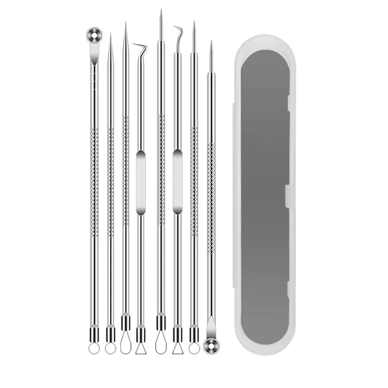 Each tool in the set is crafted from high-quality stainless steel with durable electroplating, ensuring corrosion resistance, easy sterilization, and long-term use. The ergonomically designed tools allow for precision extraction with minimal pressure, helping you maintain clearer, healthier skin without damage or scarring.