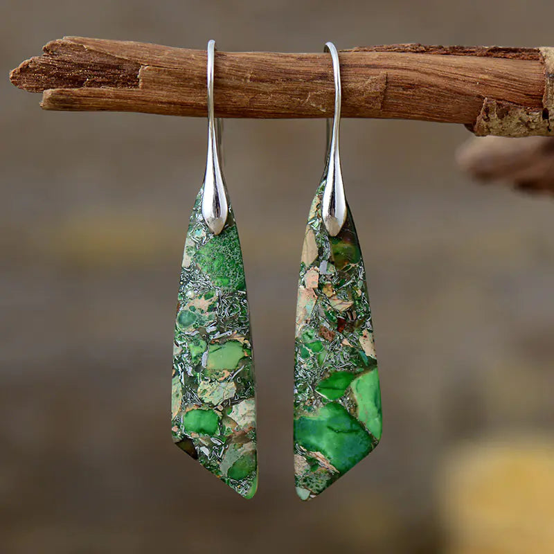 Bohemian Geometric Pendant Earrings – Natural Emperor Stone Dangle Jewelry for Women