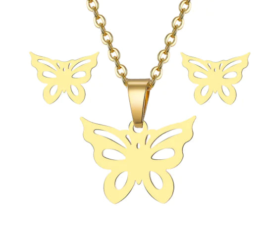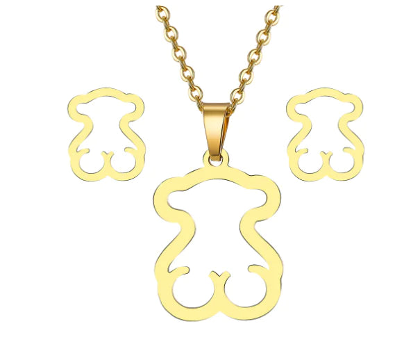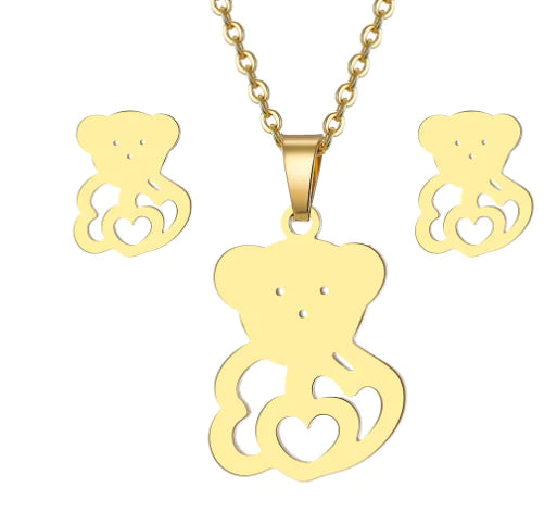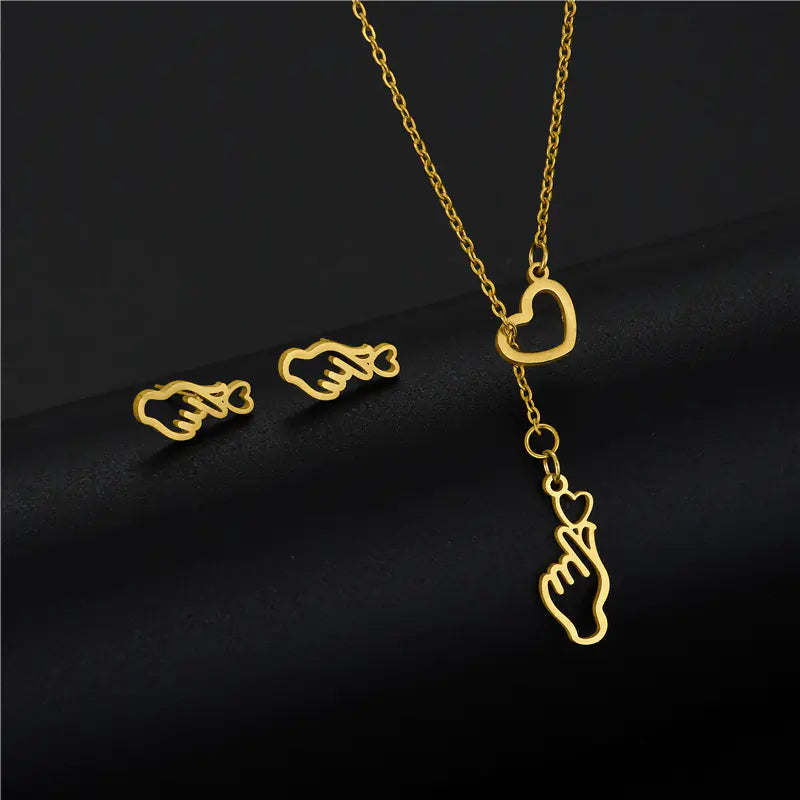 Heart Pendant Necklace & Earring Set – Minimalist Stainless Steel Jewelry for Women