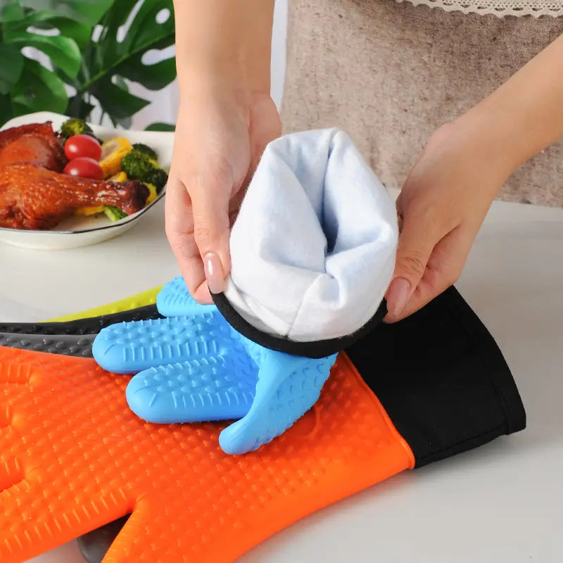 Elevate your cooking and grilling experience with our Heat-Resistant Grilling Gloves, designed to deliver maximum protection, comfort, and control. Made from high-quality heat-resistant silicone with an inner cotton insulation layer, these gloves protect your hands from extreme heat while keeping them cool and comfortable.