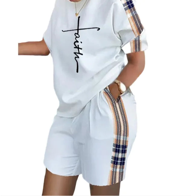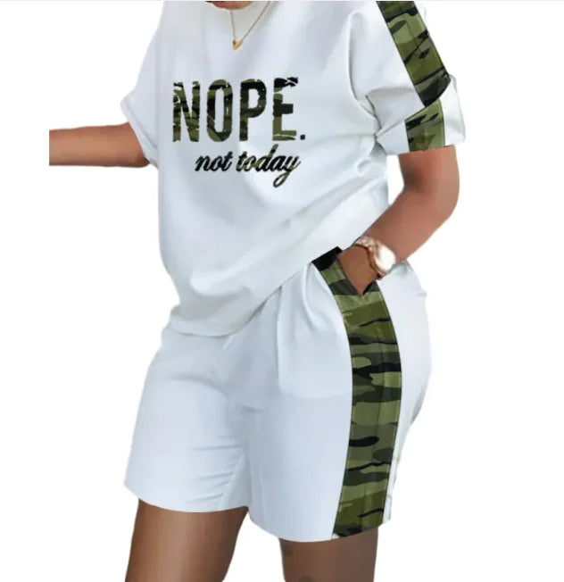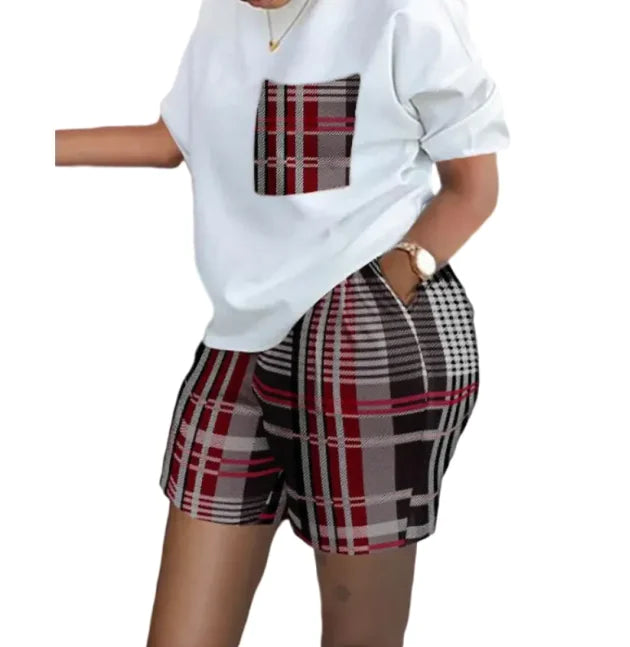 Women’s Printed Two-Piece Commuter Set – Short-Sleeve Top & Matching Shorts